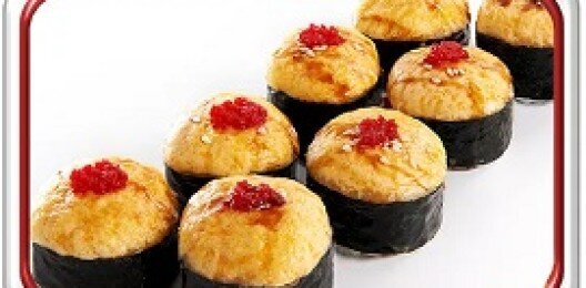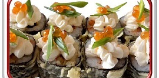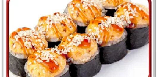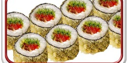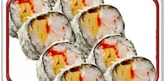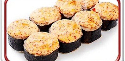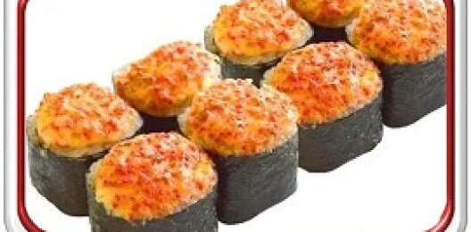 Снежный краб, майонез, огурцы, икра Тобико, рис.