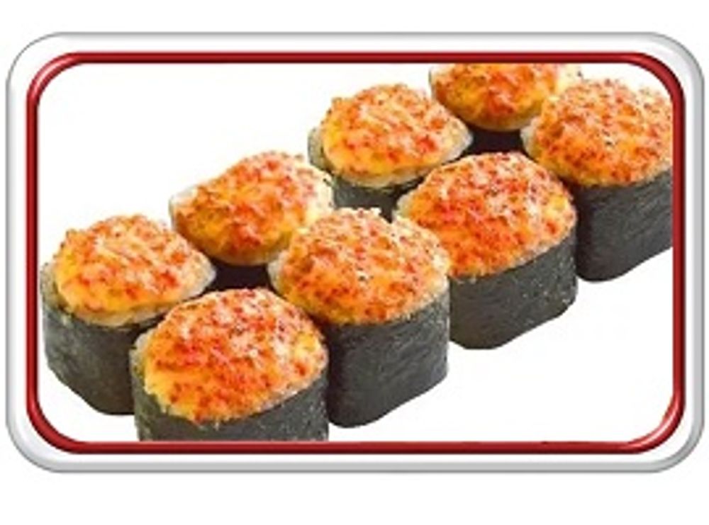 Копченый угорь, огурцы, капуста пекинская, икра Тобико, оригинальный соус.
