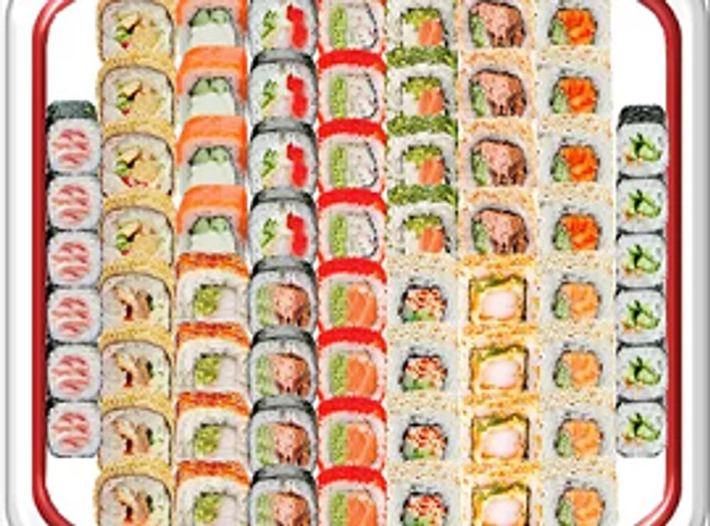 Ролл бекон-6шт. Ролл огурец-6шт. Ролл Американский-4шт. Ролл Европейский-4шт. Ролл Канадский-4шт. Ролл Филадельфия-4шт. Ролл Амстердам-4шт. Ролл Лосось в кляре-4шт. Ролл Киото-4шт. Ролл Калифорния классик-4шт. (68шт.)